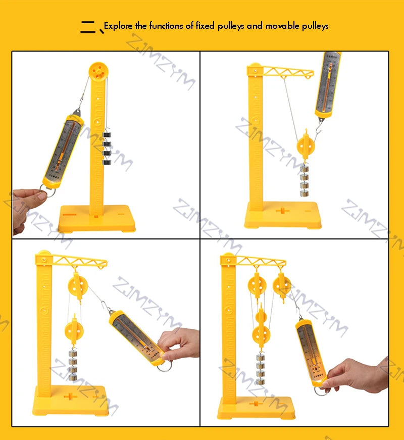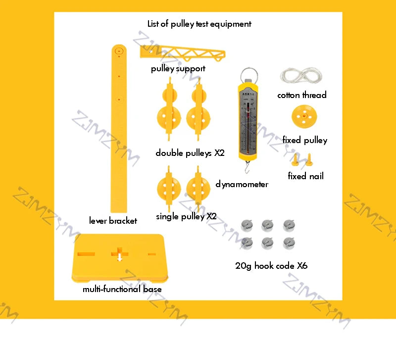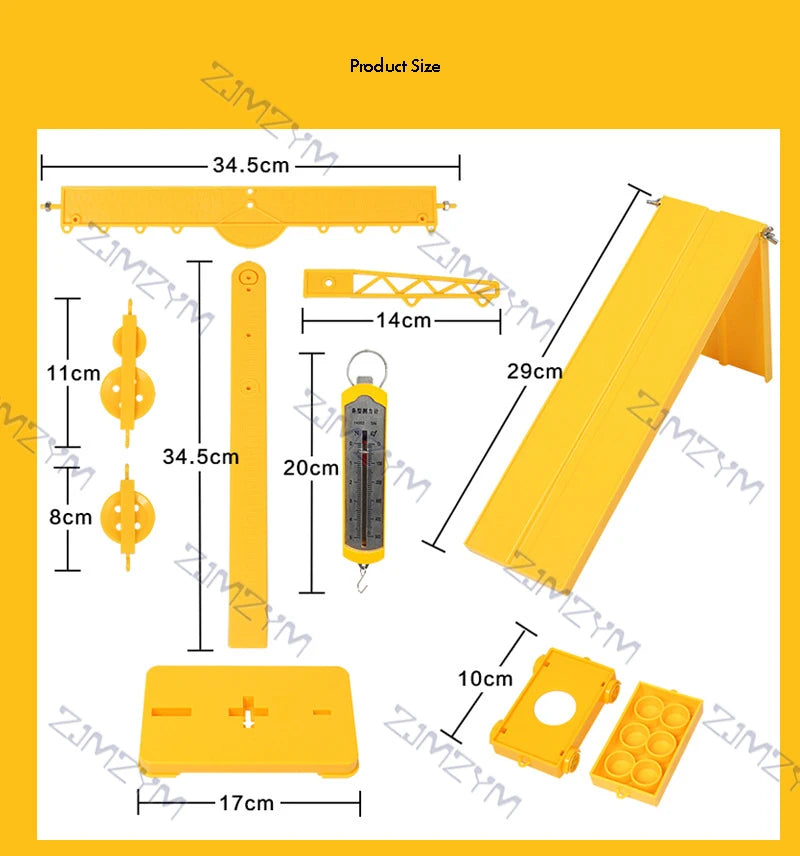 El paquete incluye: 1 juego de experimentos de física con bloques de poleas.